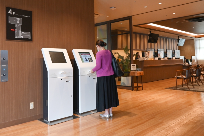 受付は健康管理センターのある4階エレベーターホールの受付端末にて行います。
