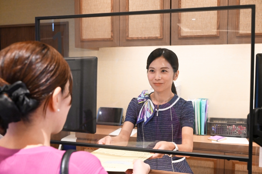 必要書類等の確認を行いますので、待ち合いラウンジにてお待ちください。受診案内の指定時間に達した方よりお呼び出しいたします。